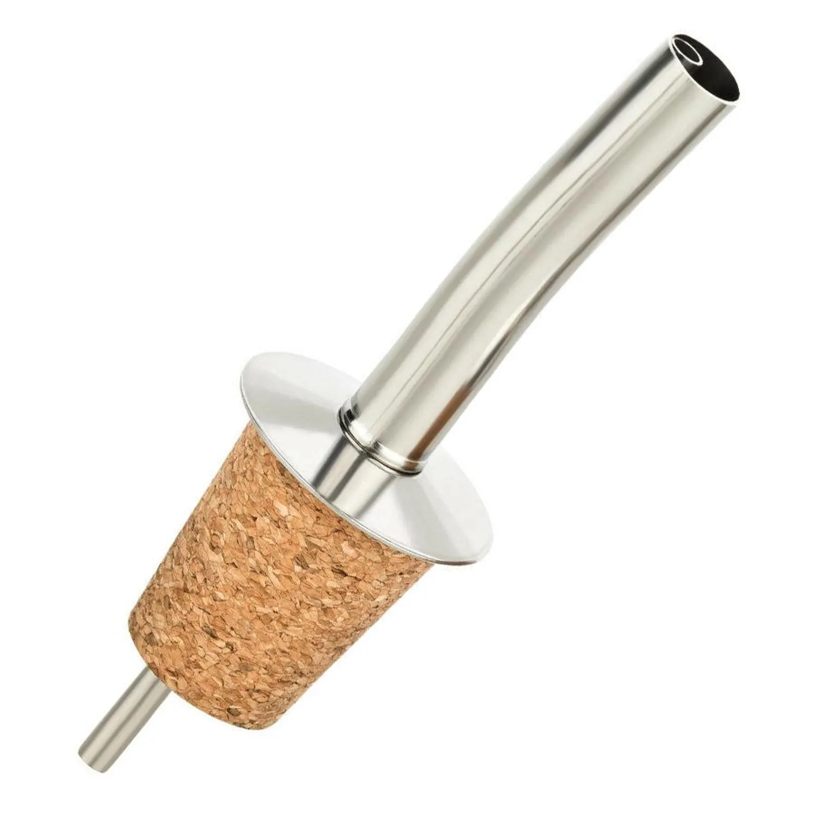This stainless steel wine pourer with natural cork stopper provides smooth, controlled pouring while helping reduce drips.